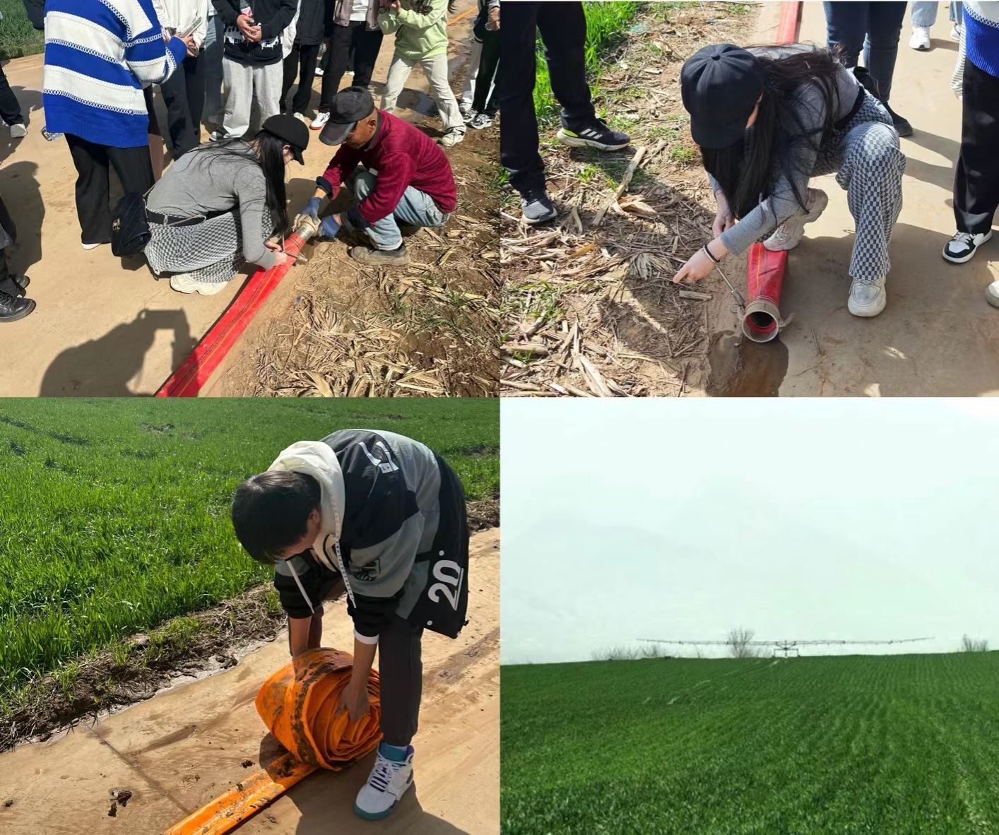 当地工作人员给同学们讲解了引水灌溉的基本知识,通过管道、渠道以及渠系建筑物输送到农田灌溉。同学们自己动手,实践操作,通过连接管道、拆收管道、亲自灌溉,使学生们切身体验了劳动教育的意义。